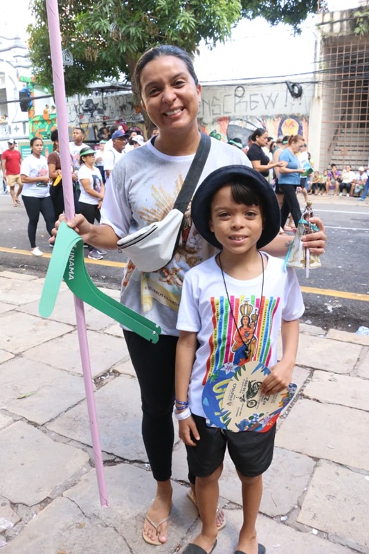 Adriana Pereira e o filho Pedro, no Círio – foto de Adriano Nascimento
