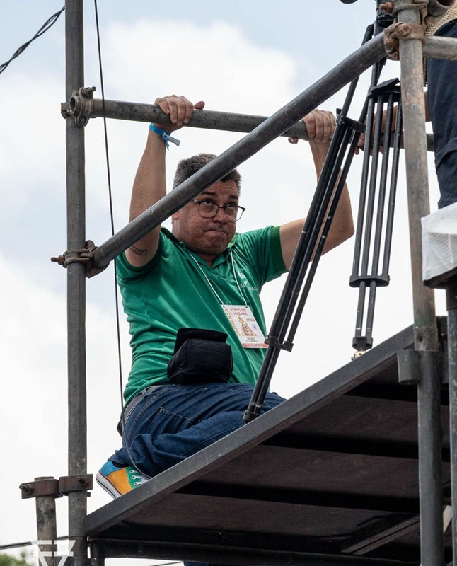 Thalmus Gama, da Secom/ Agência Pará, com o auxílio luxuoso de uma escada