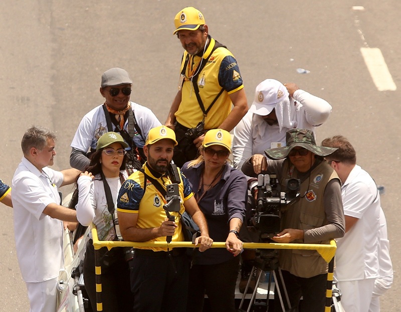 Marcio Lins e Bianca Teixeira comandaram a transmissão do Círio pela TV Norte SBT Pará