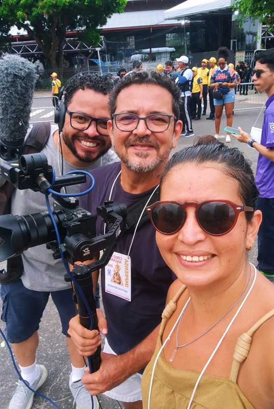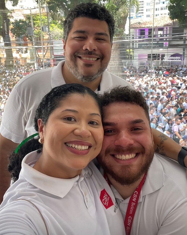 Ize Sena, Ronaldo e George Vinícius na transmissão do Círio pela Rádio CBN Belém