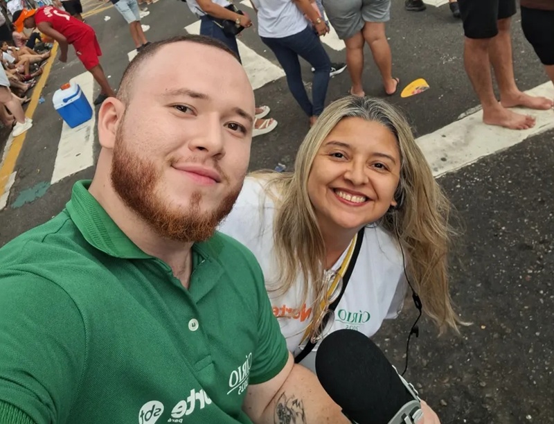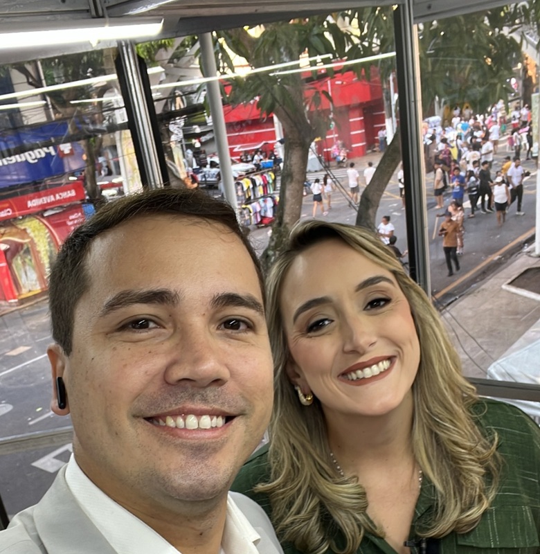 Andrey Araújo, da TV Norte SBT Pará, e Luciana Cavalcante na Trasladação