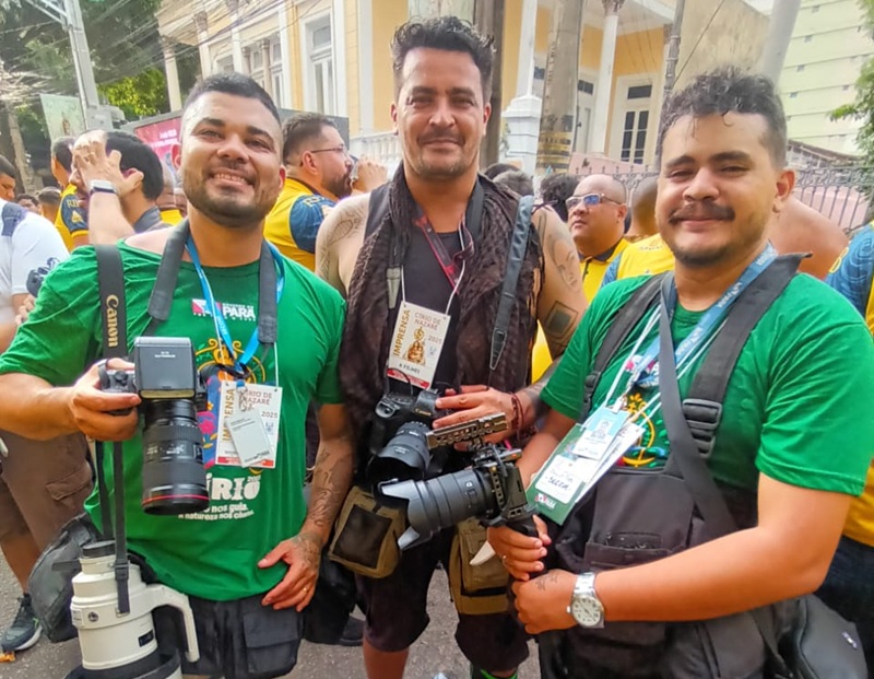 Fernando Sette, Marcio Nagano e Bruno Carachesti no dia do Círio – foto de Marcelo Seabra