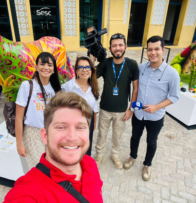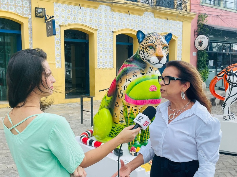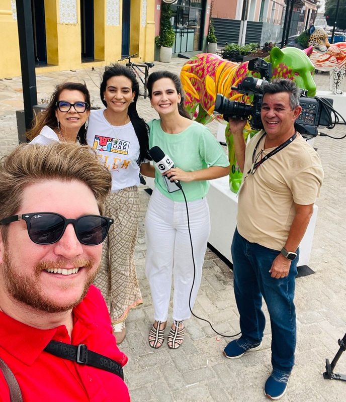 Jaguar Parade em Belém – Pela primeira vez na região Norte, a exposição Jaguar Parade estreou em Belém no último fim de semana, com 50 esculturas de onças-pintadas espalhadas pela cidade, destacando a importância da conservação da espécie, especialmente na Amazônia, que concentra a maior população do felino. O jornalista Jeferson Höenisch, assessor de imprensa da Jaguar Parade Belém 2025, acompanhou a entrevista da curadora Vania Leal e da artista plástica Mama Quilla para o programa “Pará Bom D+”, da TV Record, apresentado por René Marcelo, com reportagem de Pedro Pessoa e imagens de Wendell Carvalho, no sábado, 25, quando começou a mostra. Höenisch também acompanhou a entrevista da TV Liberal, com reportagem de Laís Nunes e imagens de Marcos Pinheiro, registrando a abertura da exposição.