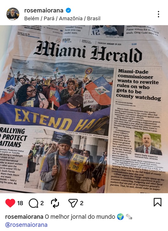 Belém, 3 de fevereiro de 2026 – E começamos o “mês de folia”, fevereiro, todo arrumadinho que vai durar exatas quatro semanas fechadas. Vocês já viram isso? E hoje tem muitas novidades, tem Rainha das Rainhas, tem exposição do Nagano, muitas mudanças nas redações, as coleguinhas correndo junto com Bell Marques e muitos mais. Infelizmente, não se pode dizer que a situação na TV Norte SBT Pará esteja boa. Aliás, as coisas estão muito ruins por lá, com demissões de coleguinhas e ameaças de outros serem demitidos. Atenção, Sinjor-PA, vamos ficar de olho nesse povo de Manaus que veio bagunçar a comunicação em Belém.