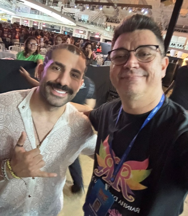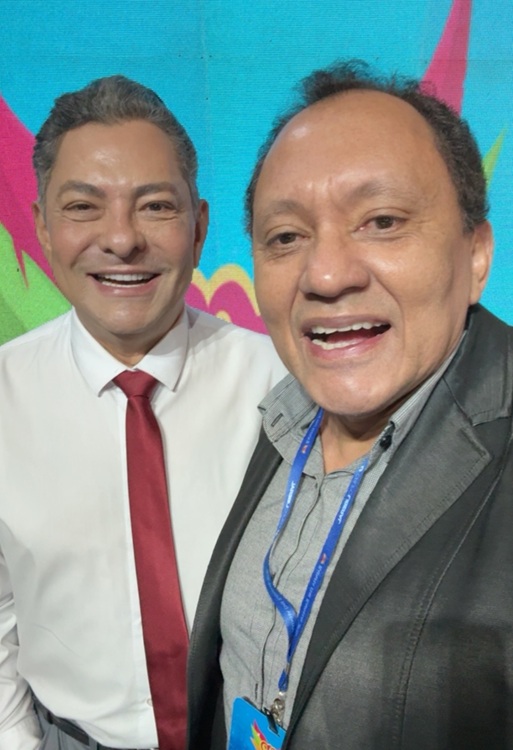 Kaizar, que foi um dos jurados do RR 2026, e o meu colega Tarso Sarraf, coordenador de audiovisual da Redação Integrada O Liberal, o homem que faz “de um tudo” nos bastidores da transmissão do concurso