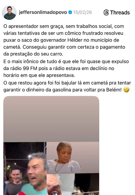 Inveja gritando – Aliás, que dor de cotovelo é essa do Jefferson Lima contra o Magela, hein? A inveja grita em cada linha dessa postagem do Jefferson, o “não posso fazer nada, eu sou apenas um repórter”.