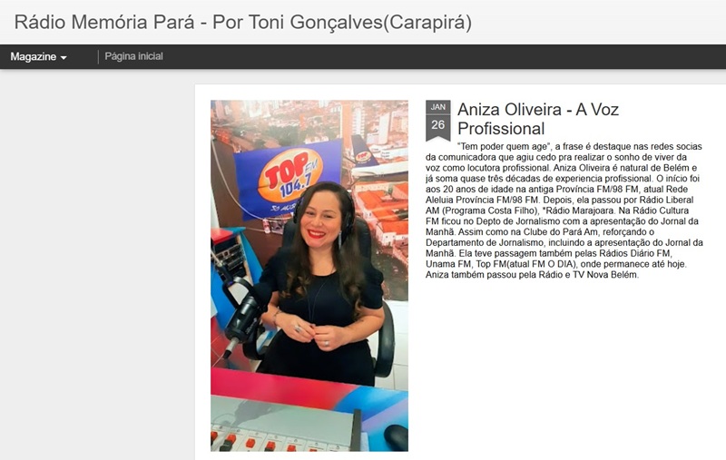 Blog Rádio Memória – Tony Gonçalves, radialista da rádio 99 FM, mais conhecido como Carapirá, mantém o blog Memória do Pará, no qual ele relembra os grandes nomes da história do rádio no Pará. É uma excelente fonte para pesquisas e também a forma que Tony encontrou para manter viva a memória de grandes nomes do rádio paraense. O link é este aqui: radiomemoria-pa.blogspot.com/