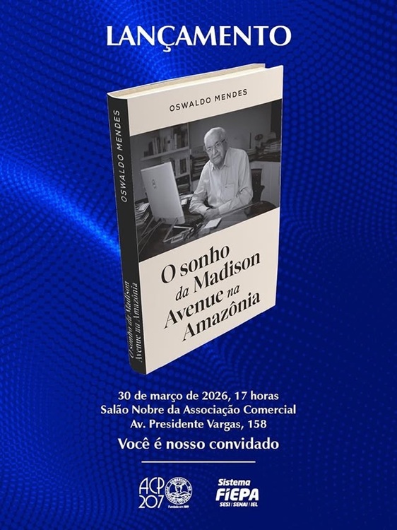 Livro de Mendes – O publicitário Oswaldo Mendes, pai, de 97 anos e ainda em atividade na sua Mendes Comunicação, prepara o lançamento do livro “O sonho da Madison Avenue na Amazônia”, obra que resgata a trajetória da publicidade na região Norte e os bastidores da criação da Mendes, primeira agência de propaganda da Amazônia. O lançamento será na segunda-feira, dia, 30, às 17h, na sede da Associação Comercial do Pará, Centro de Belém. Referência da comunicação na Amazônia, Mendes compartilha relatos que ajudam a entender a construção do mercado publicitário no Norte do país, além de destacar personagens e projetos que marcaram época.