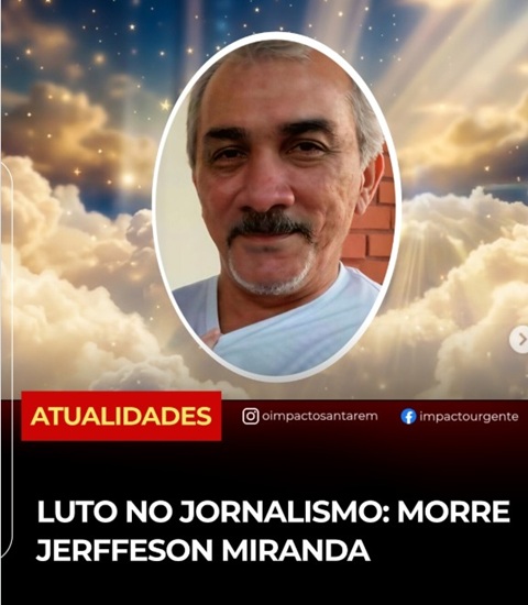 Morte – Faleceu na tarde de quinta-feira, 2, o jornalista santareno Jefferson Miranda, que estava internado no hospital Regional do Baixo Amazonas, em Santarém PA. Miranda foi editor do Portal Santarém e sofreu um AVC isquêmico em fevereiro, ficou internado, mas não resistiu às sequelas da doença.